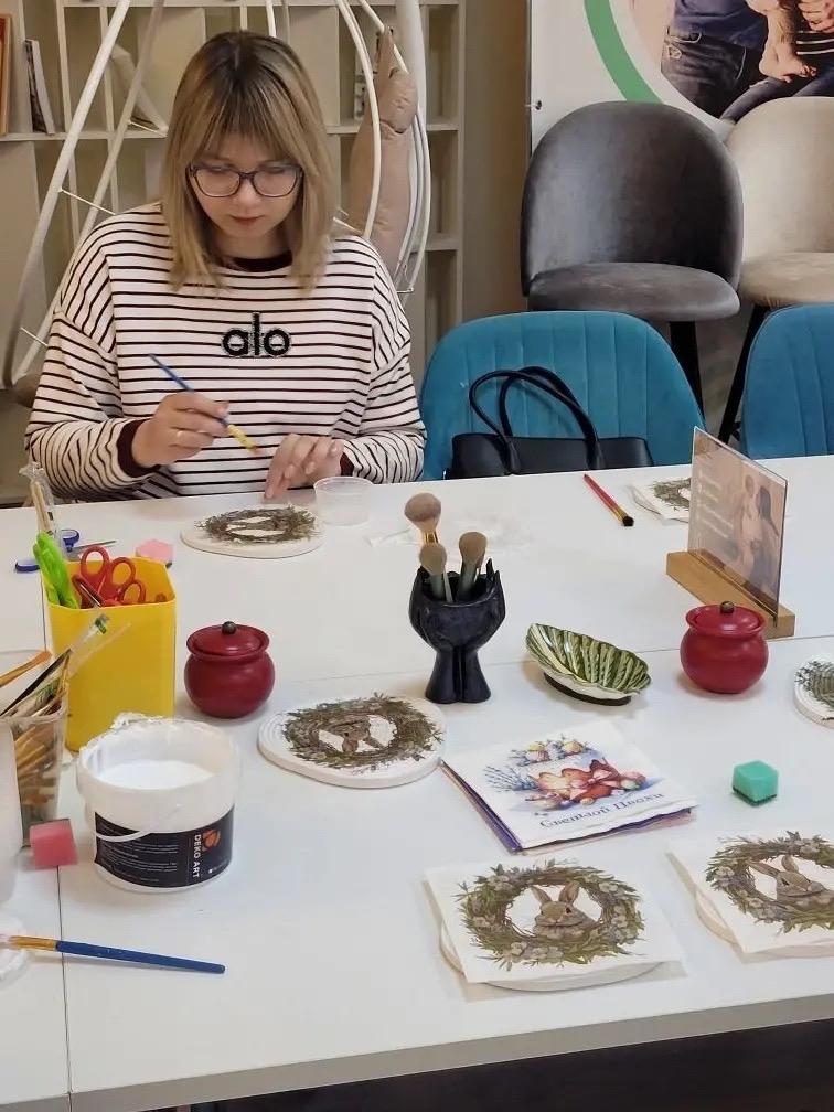Праздник продолжился в Семейном МФЦ за мастер-классом по росписи пасхальных тарелок и душевным чаепитием, где говорили о самом важном.