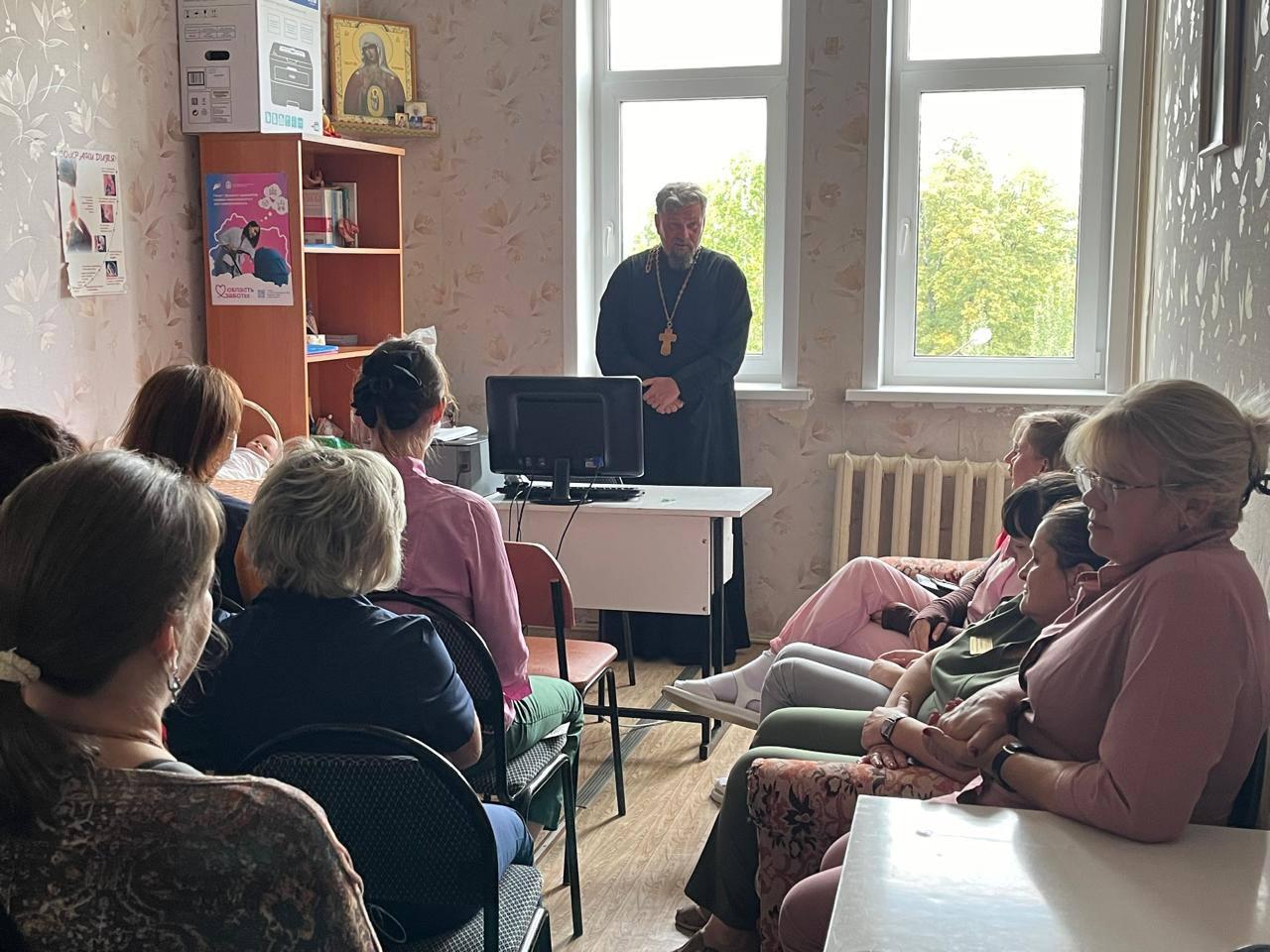 Встреча настоятеля Спасо-Преображенского собора г.Болхов Александра Кузнецова с врачами и беременными женщинами: объединение духовных и медицинских аспектов. 25 сентября в женской консультации N1 Городской больницы им. С.П. Боткина состоялась встреча настоятеля Спасо-Преображенского собора г.Болхов Александра Кузнецова с врачами акушерами-гинекологами и беременными женщинами. На мероприятии были затронуты важные вопросы, связанные с семейными ценностями, крещением детей, причастием и исповедью. Особое внимание уделено укреплению духовно-нравственных ценностей семьи и поддержке будущих мам на пути материнства.